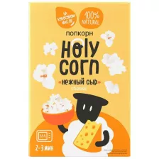 Микроволновый попкорн Holy Corn - Нежный сыр. Настоящее удовольствие для любителей горячего, свежего и хрустящего попкорна. Крупные зерна, приправленные правильным кокосовым маслом, гранулами морской соли и нежным сыром Чеддер, соберут вместе тех, кто любит и заботится друг о друге и своем здоровье!