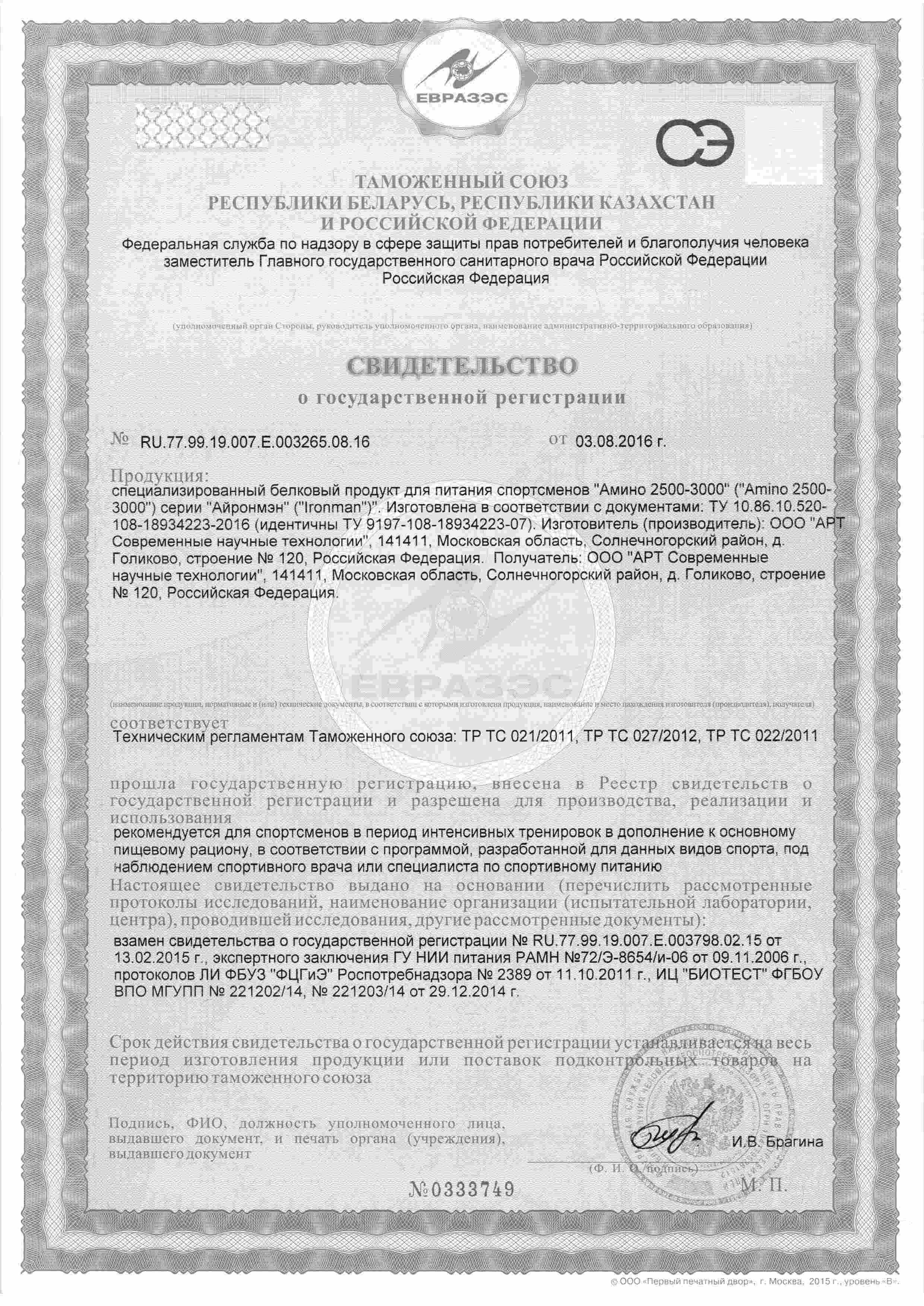 В одной порции Амино 2500 (2-х таблетках) содержится:
