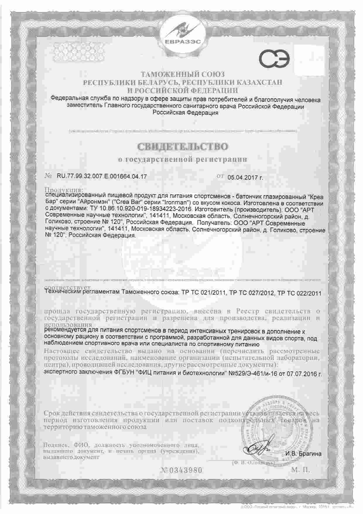 IRONMAN Батончик "Crea Bar" с креатином 50г (шоубокс х24) 1шт