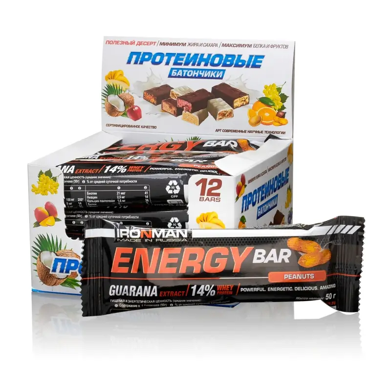 IRONMAN Батончик "Energy Bar" c гуараной 50г (шоубокс х24) 1шт