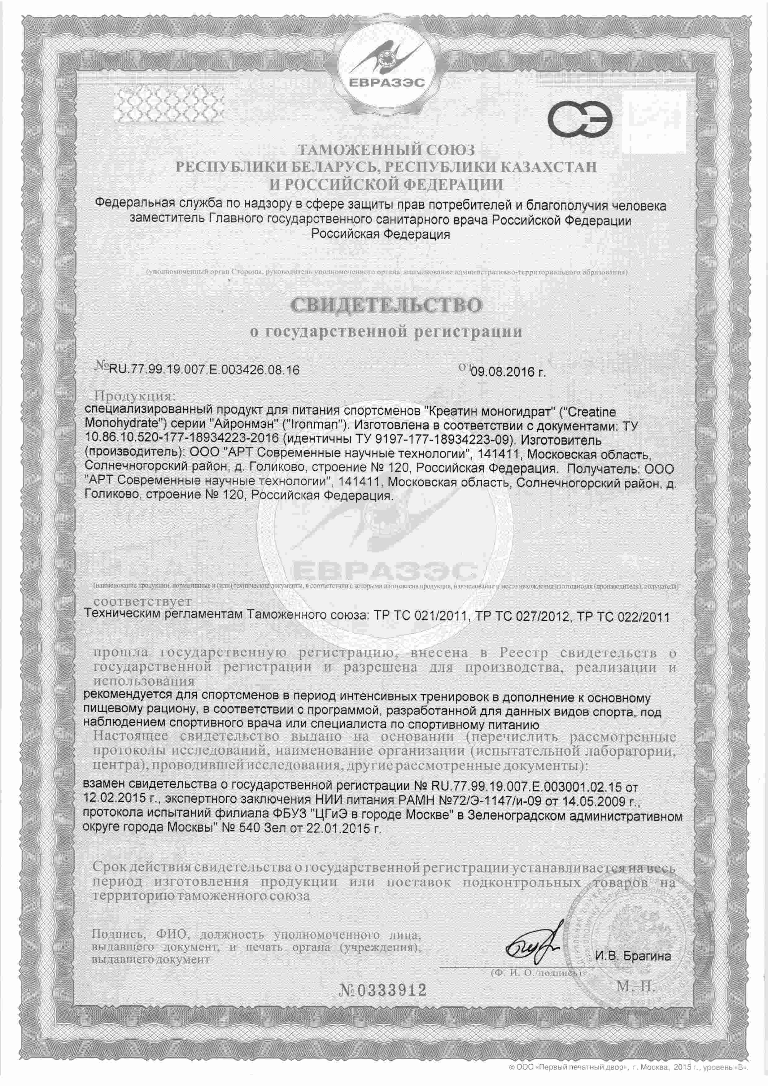 "Креатин Моногидрат" - это наиболее зарекомендовавшая себя пищевая добавка для спортсменов. Исследования показали, что при употреблении моногидрата креатина наблюдается повышение уровня предельных нагрузок, увеличение силы и выносливости. Это объясняется способностью моногидрата креатина поддерживать высокий уровень АТФ в клетках, при одновременном снижении концентрации аммиака в крови.
