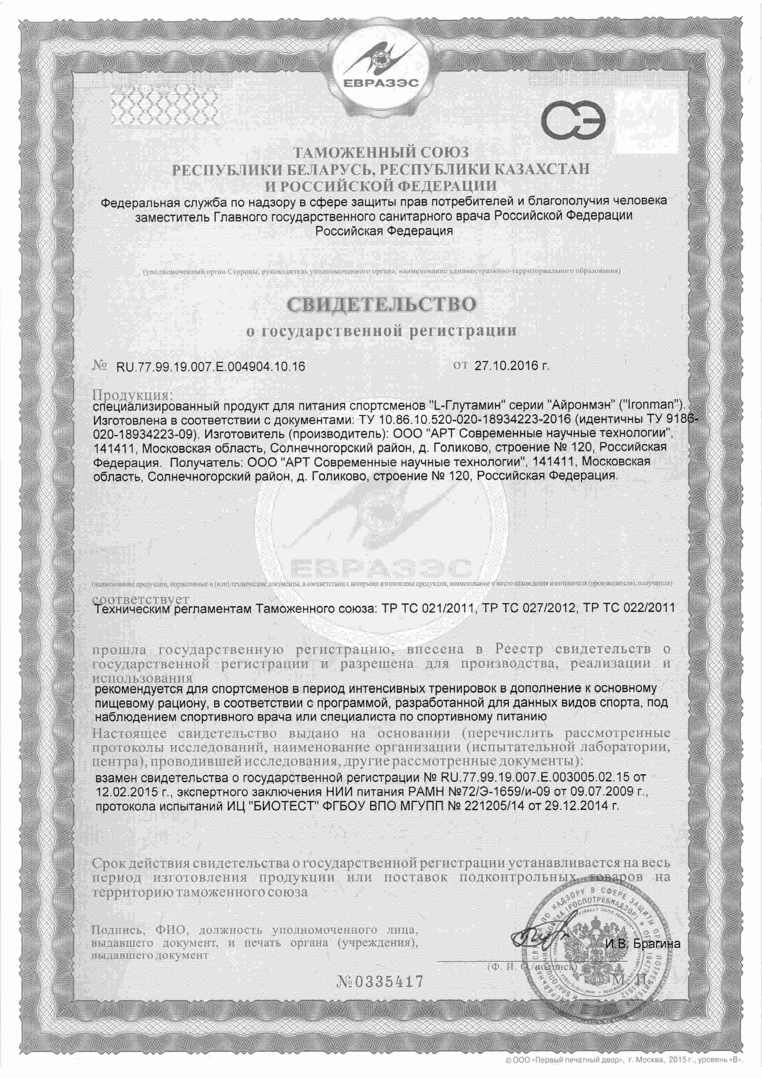 В одной капсуле: 500мг L-глутамин