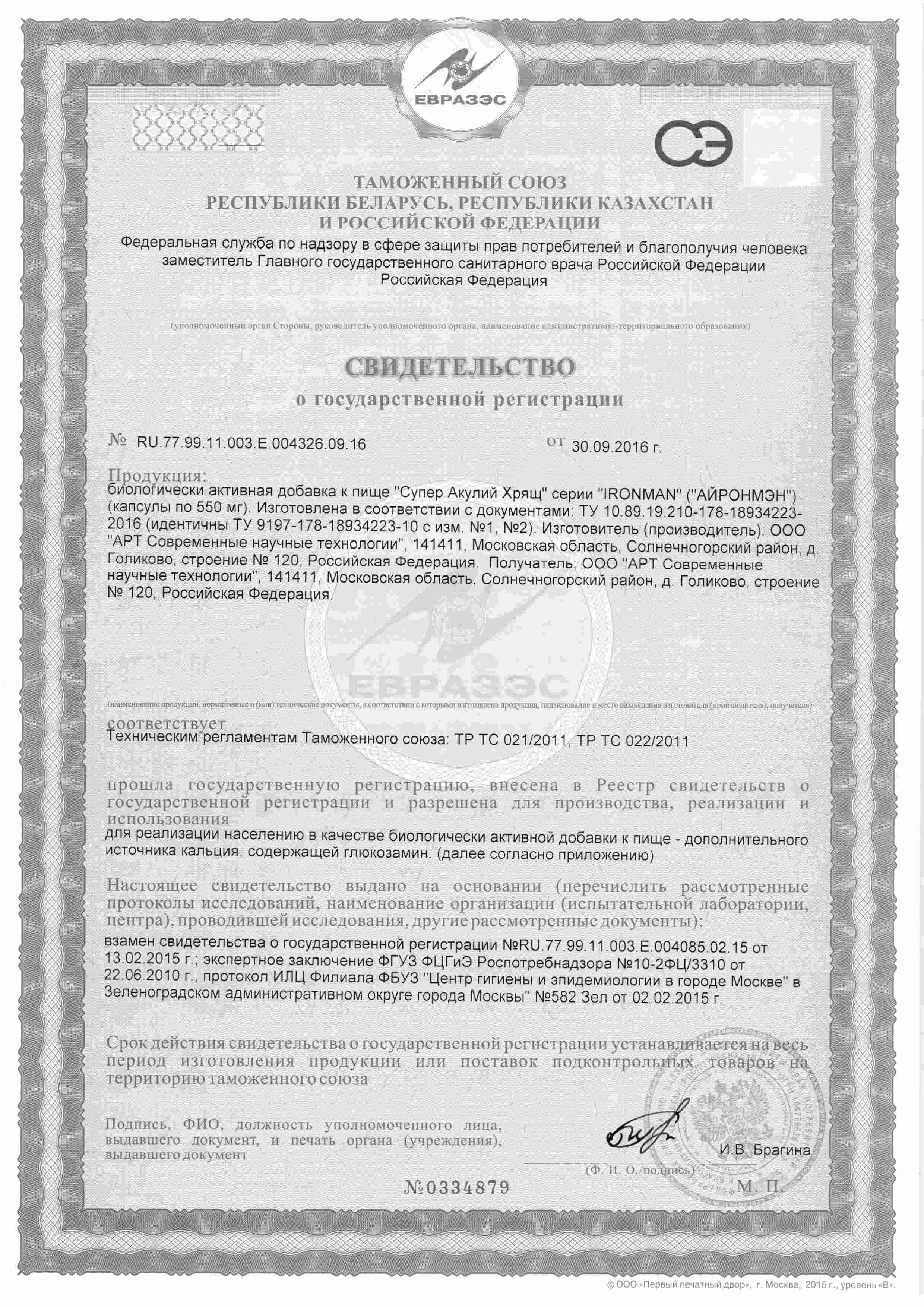 Каждая капсула содержит 500 мг концентрата акульего хряща (Шарк Картиладжа)