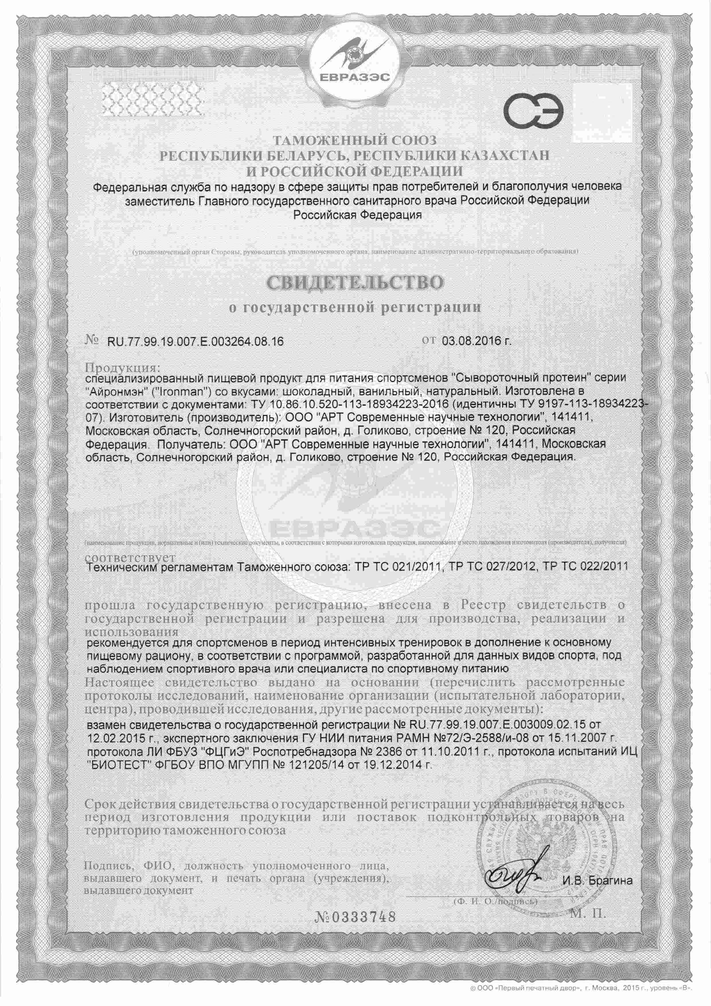 Продукт производится российской компанией IRONMAN из экологически чистых ингредиентов, на современном оборудовании в соответствии нормам российского и междунароного стандартов качества.