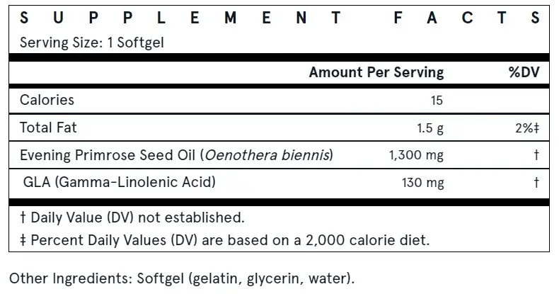 Примула вечерняя — это масло холодного отжима, не содержащее растворителей, из семян примулы вечерней ( Oenothera biennis ), источника гамма-линоленовой кислоты (ГЛК). ГЛК — это важная жирная кислота омега-6, поддерживающая выработку простагландинов (гормоноподобных соединений), которые играют важную роль в здоровье кожи и иммунитета.* Масло вечерней примулы обеспечивает питательную поддержку при легком дискомфорте, связанном с ПМС.