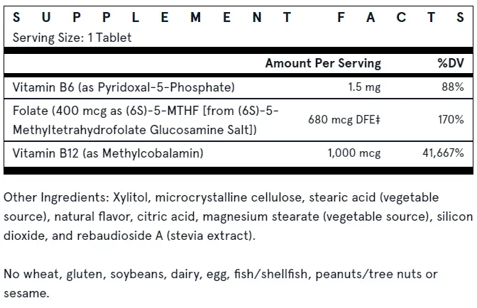 Jarrow Formulas Метил B-12 и метилфолат плюс пиридоксаль-5-фосфат (P5P) сочетают в себе биологически активные коферментные формы витаминов B12, B9 и B6 , которые поддерживают клеточный энергетический метаболизм и синтез нейротрансмиттеров .* Эта комбинация поддерживает переработку гомоцистеина в метионин для поддержания здоровья сердечно-сосудистой системы.*