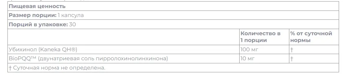 QH-Absorb® и PQQ™ сочетают восстановленную активную антиоксидантную форму коэнзима Q10, которая всасывается значительно лучше, чем убихинон, с пирролохинолинхиноном, способствующему образованию новых митохондрий. Эта комбинация поддерживает здоровье сердца и когнитивные функции.