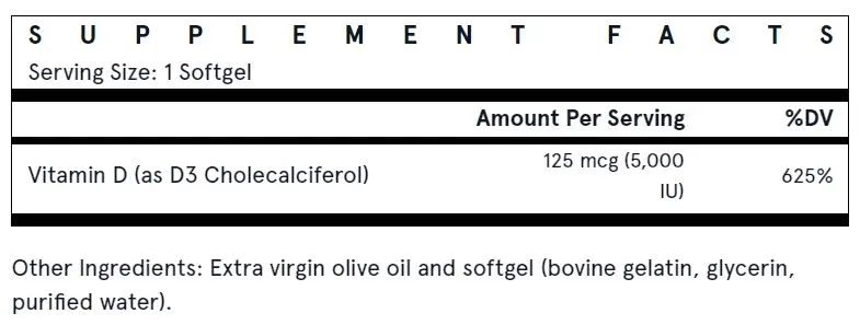 JARROW Vit D3 5000 IU SGC 100 sgel