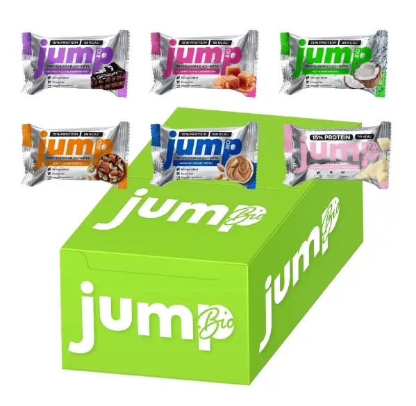 Протеиновые конфеты JUMP BIO - это отличные пп сладости, и альтернатива вредным шоколадным батончикам и выпечке. Конфеты с добавлением орехов и фруктов – полезные сладости без сахара, глютена и консервантов. На ваш выбор 6 вкусов. Хотите иметь идеальную фигуру, но не готовы отказываться от вкусных лакомств? Представляем вам наши диетические белковые батончики! Эти протеиновые батончики ассорти станут вашим незаменимым помощником на пути к стройности и здоровому образу жизни. Почему наши батончики так особенны? Во-первых, они содержат высокое количество белка, который является основным строительным материалом для нашего организма. Благодаря этому, вы будете чувствовать себя сытыми и энергичными на протяжении всего дня. Во-вторых, мы предлагаем вам разнообразие вкусов! Насладитесь нежной соленой карамелью или выберите классический белковый батончик с кокосом. А если вы следите за уровнем сахара в своей диете, то вам понравятся наши кокосовые батончики без сахара. Диетические батончики, протеиновые и белковые - все в одном! Они идеально подойдут для спортсменов и людей, заботящихся о своем здоровье. Наш протеин бар - это не просто перекус, это настоящее спортивное питание, которое поможет вам достичь ваших целей. А еще у нас есть веганские протеиновые батончики для тех, кто предпочитает растительную пищу. И конечно же, мы не забыли о тех, кто хочет набрать вес - у нас есть специальные батончики для набора веса.Попробуйте и вы не сможете устоять перед этой спортивной едой.