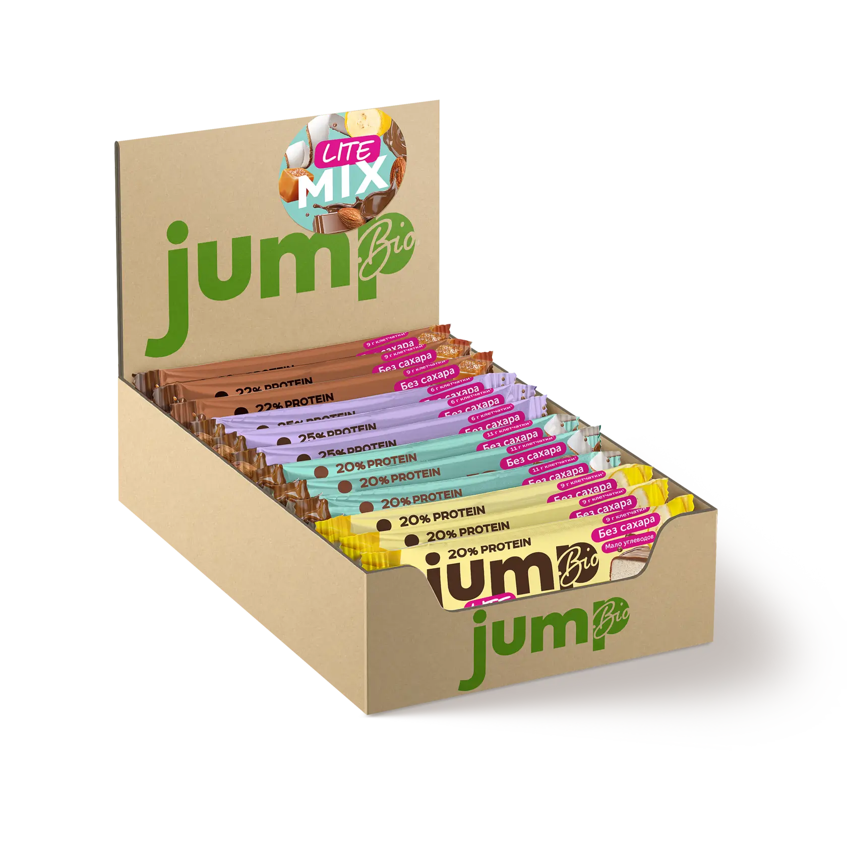 Jump.Bio Батончик глазированный 40г Ассорти 12шт
