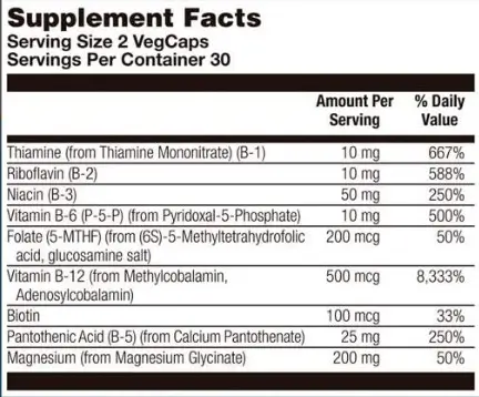 Наша формула начинается с превосходных витаминов группы В, включая коферментные витамины B-6 (P-5-P), B-12 (метилкобаламин и аденозилкобаламин) и фолиевую кислоту (5-MTHF). В своем биологически активном состоянии эти витамины могут быть более биодоступными для получения еще большей пользы. Мы также включаем 200 мг глицината магния – предпочтительную форму магния, связанную с аминокислотой глицином, которая может помочь поддерживать здоровый сон, кости и работу сердца.