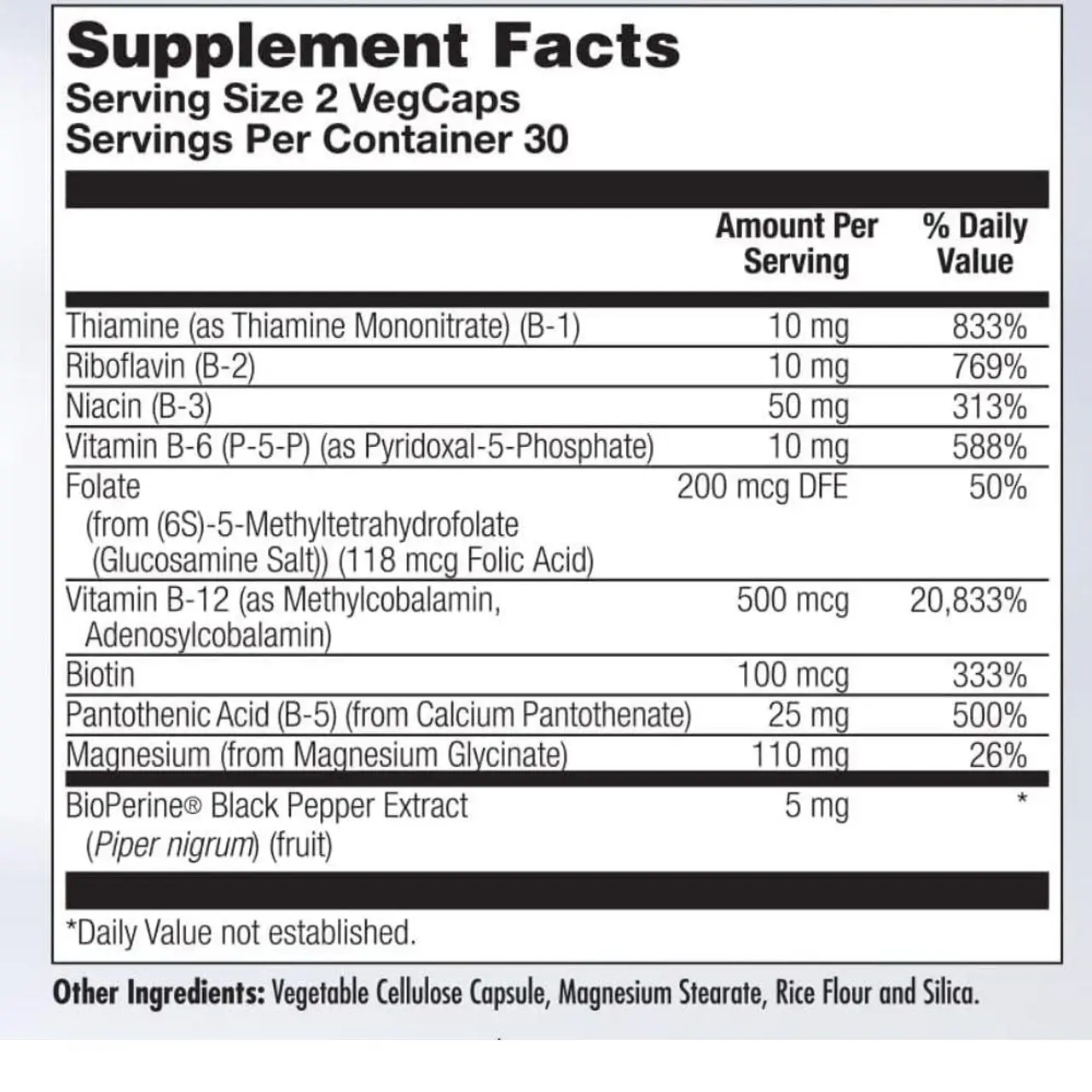 Превосходное питание: С биологически активными витаминами группы В, включая P-5-P, метилкобаламин и 5-MTHF