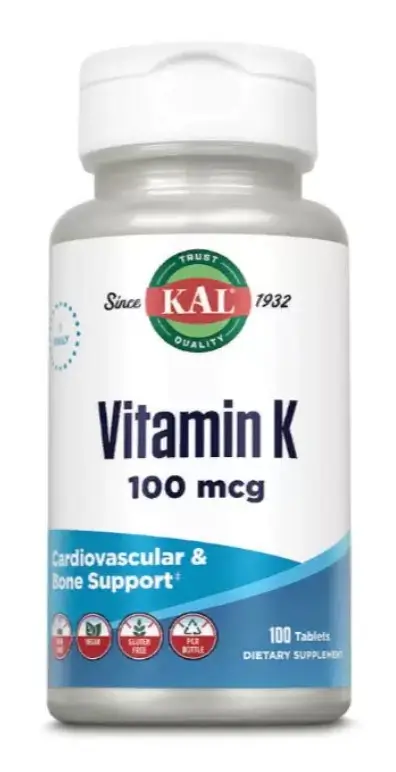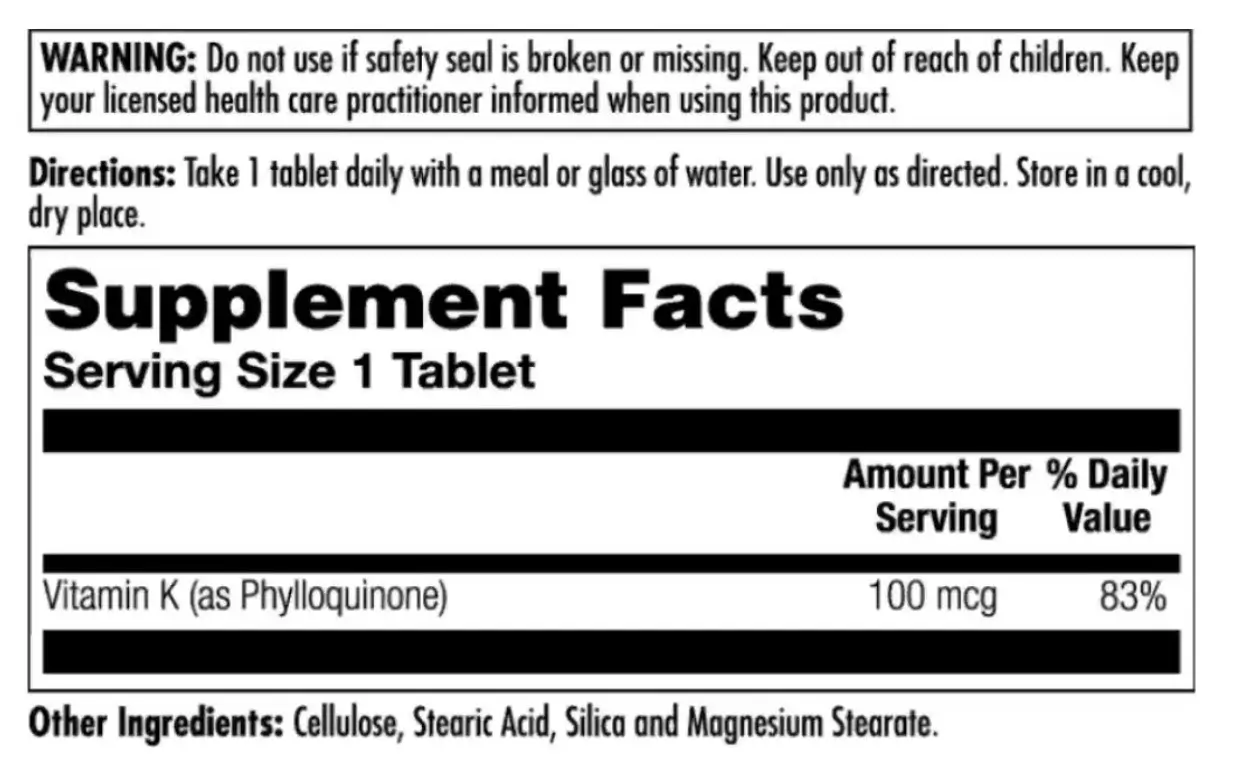 Витамин K (виде филлохинона) 100 мкг, Целлюлоза, стеариновая кислота, диоксид кремния и стеарат магния