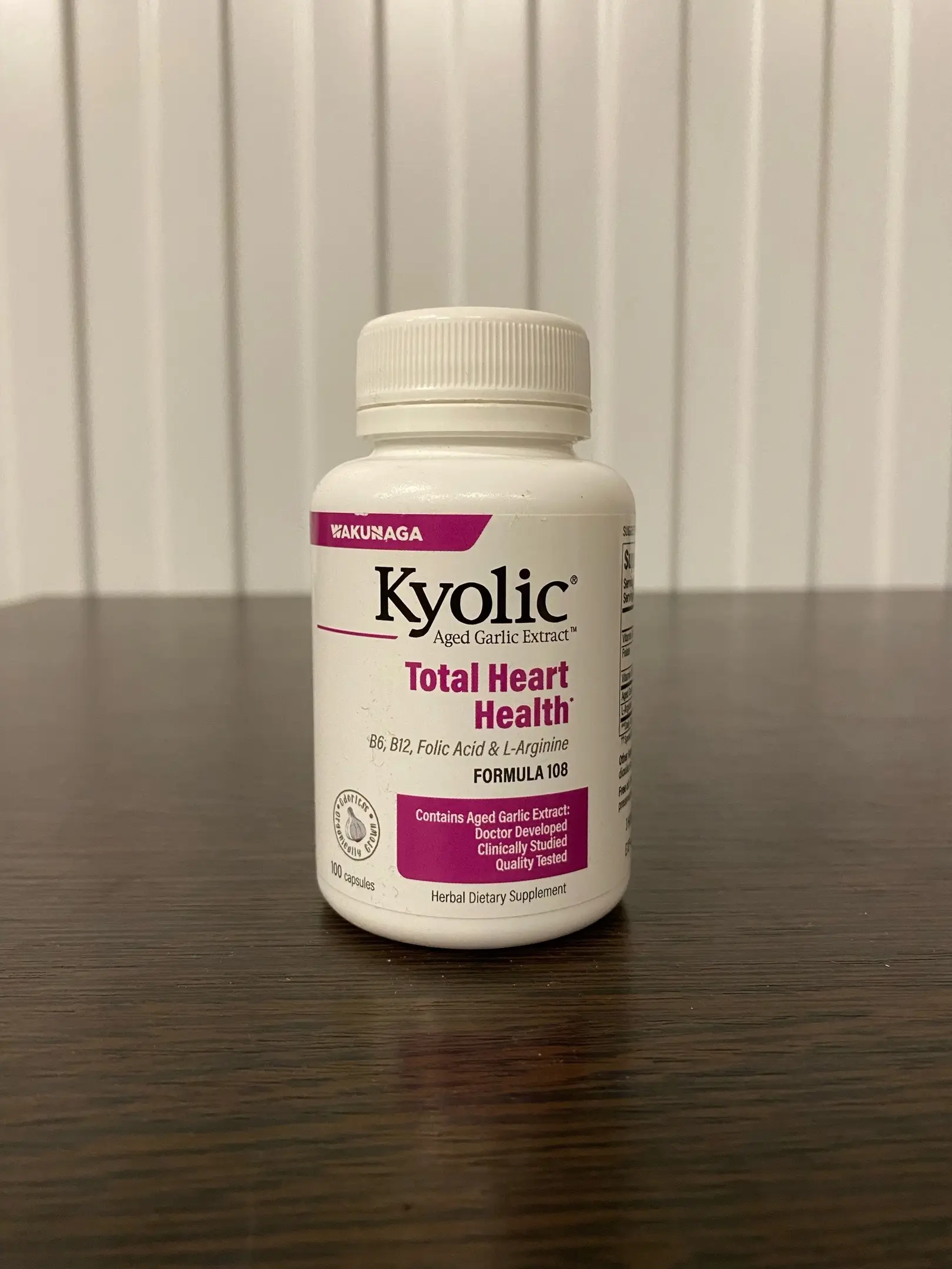 Состаренный экстракт чеснока от Kyolic получают из 100% органических† головок чеснока. Затем их состаривают путем уникального экстракционного процесса для устранения запаха и создания полезных соединений, содержащихся только в Kyolic. Kyolic 108 содержит состаренный экстракт чеснока с витаминами B6, B12, фолиевой кислотой и L-аргинином, патентованное средство для здорового гомоцистеина, поддержки нормальных уровней холестерина, давления и циркуляции крови (для здоровья сердца).