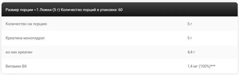 Состав: креатина моногидрат, витамин В6 (пиридоксина гидрохлорид).