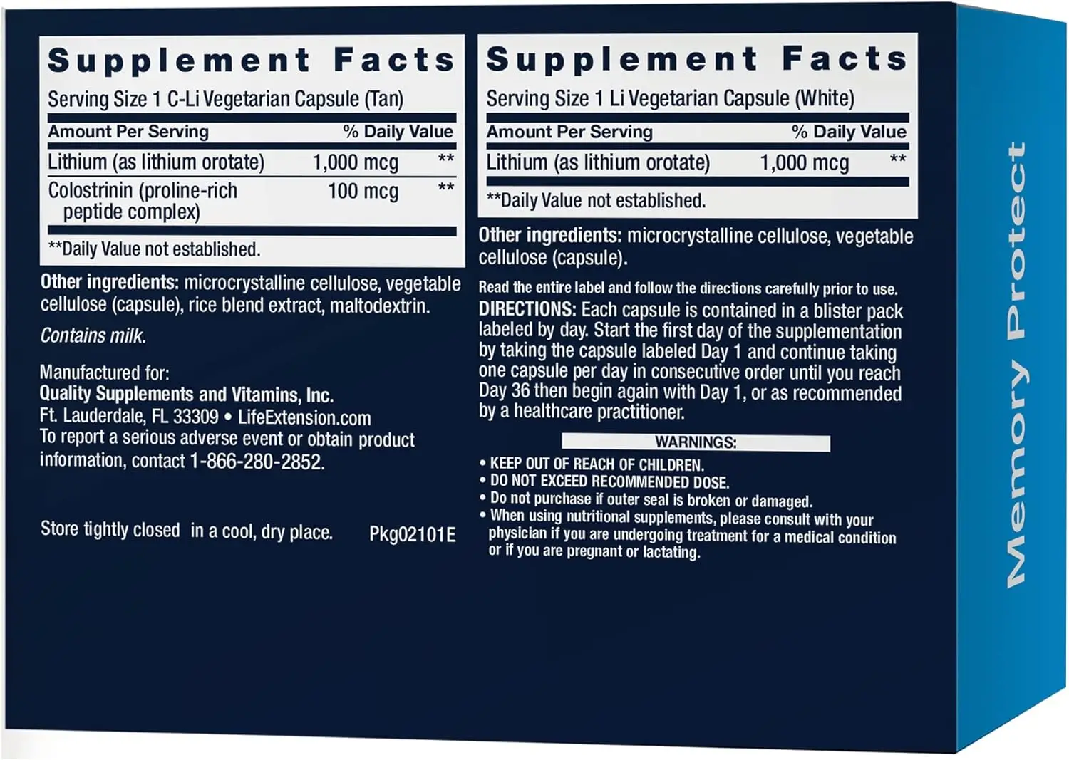 LIFE Extension Memory Protect 12 Colostrinin-Lithium (C-Li) Capsules | 24 Lithium (Li) Capsules