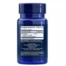 Пищевая добавка от американского бренда Лайф Экстенжн содержит запатентованный экстракт куриного грудного хряща NT Collagen, стандартизированный по содержанию 25% неденатурированного коллагена II-го типа. Добавка представлена в форме маленьких капсул, без использования ингредиентов животного происхождения.