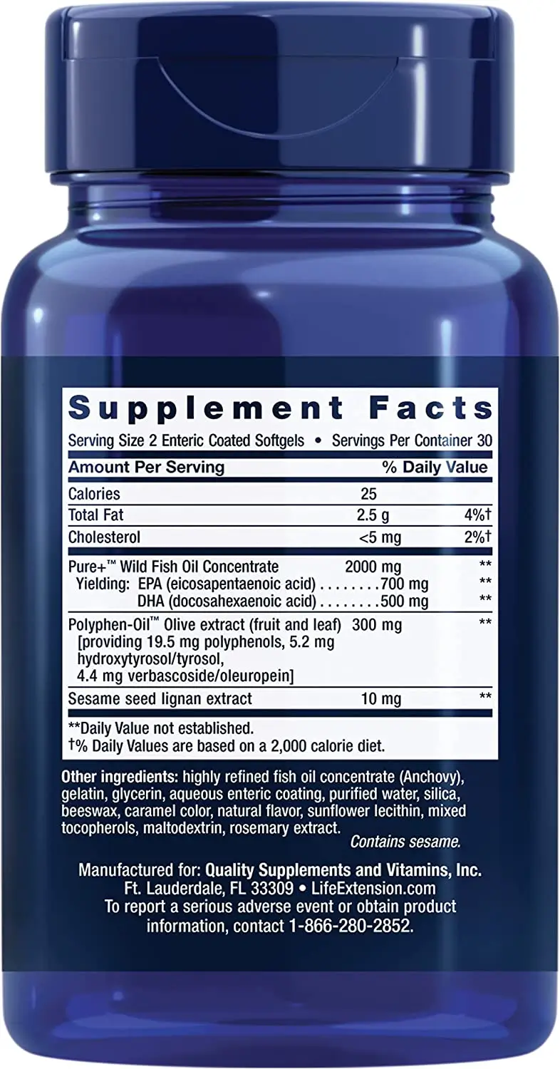 LIFE Extension Super Omega-3 EPA/DHA Fish Oil Sesame Lignans Olive Extract 60 Softgels