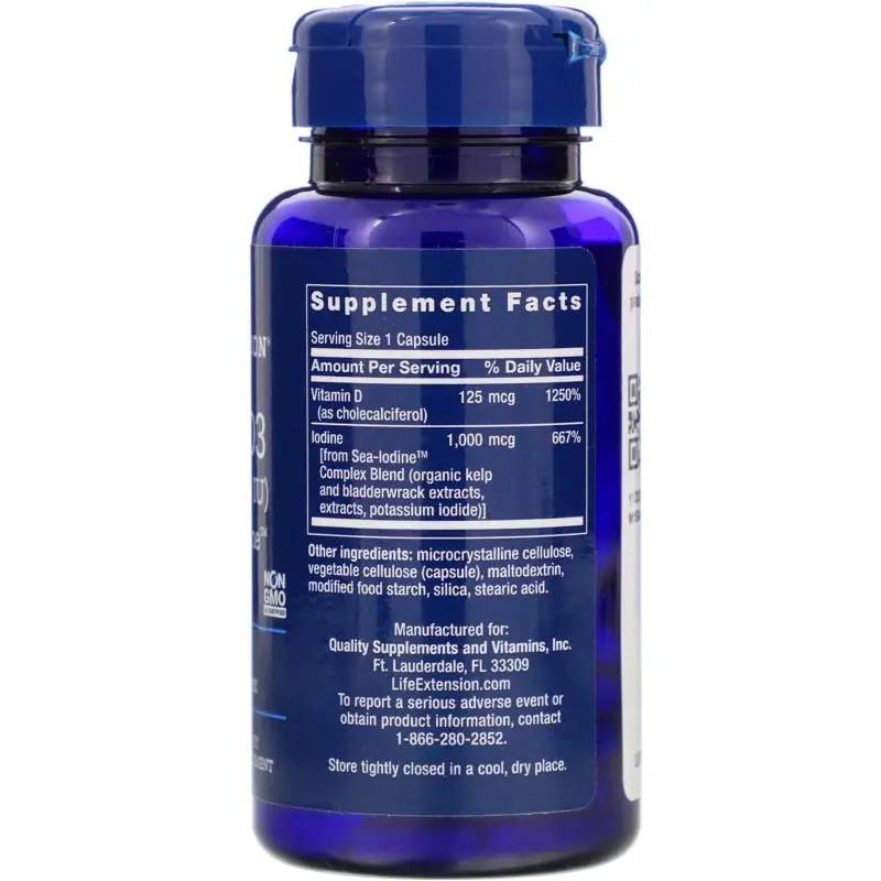LIFE Extension Vitamin D3 5000 IU With Sea Iodine 60 Softgels