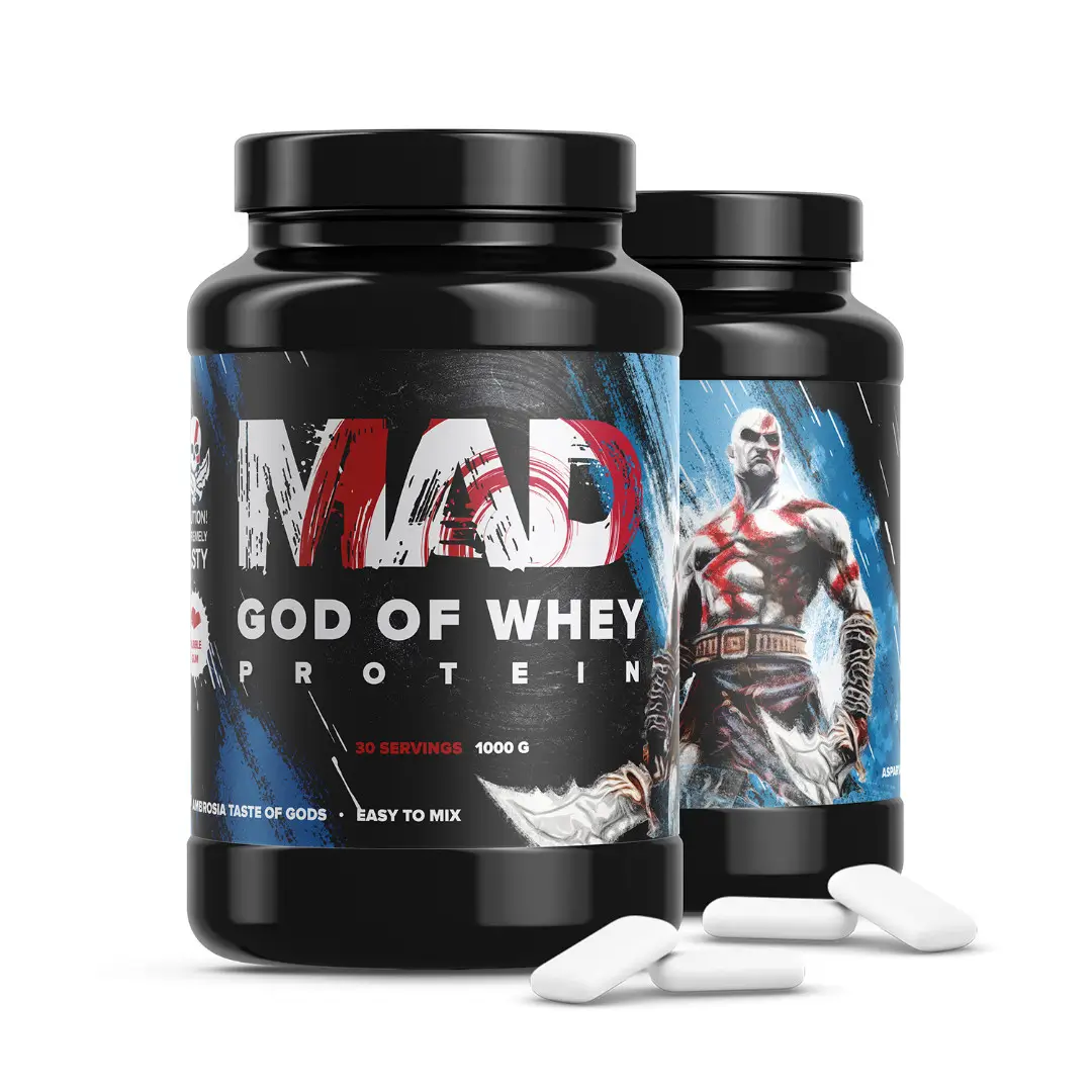 MAD GOD OF WHEY 1000 g- Спартанский генерал, который бросил вызов богам делится с вами секретом своей силы. Мы рады представить вам еще один новый продукт в ассортименте компании MAD - GOD OF WHEY. Вкуснейший протеин с идеальным содержанием белка который насытит ваши мышцы силой так, что даже боги не смогут устоять.