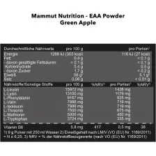 Благодаря порошку Mammut EAA организм получает все важные аминокислоты. Одна порция обеспечивает организм до 74% высококачественного EAA. EAA означает незаменимые аминокислоты, организм не может производить их самостоятельно. Поэтому наш организм должен усваивать их с пищей. Незаменимые аминокислоты включают L-лейцин, L-изолейцин, L-валин, L-лизин, L-фенилаланин, L-треонин, L-метионин и L-триптофан. Кроме того, в одной порции содержится 2,6 г BCAA. BCAA расшифровывается как "аминокислоты с разветвленной цепью". Это аминокислоты с разветвленной цепью, которые включают L-лейцин, L-изолейцин и L-валин.