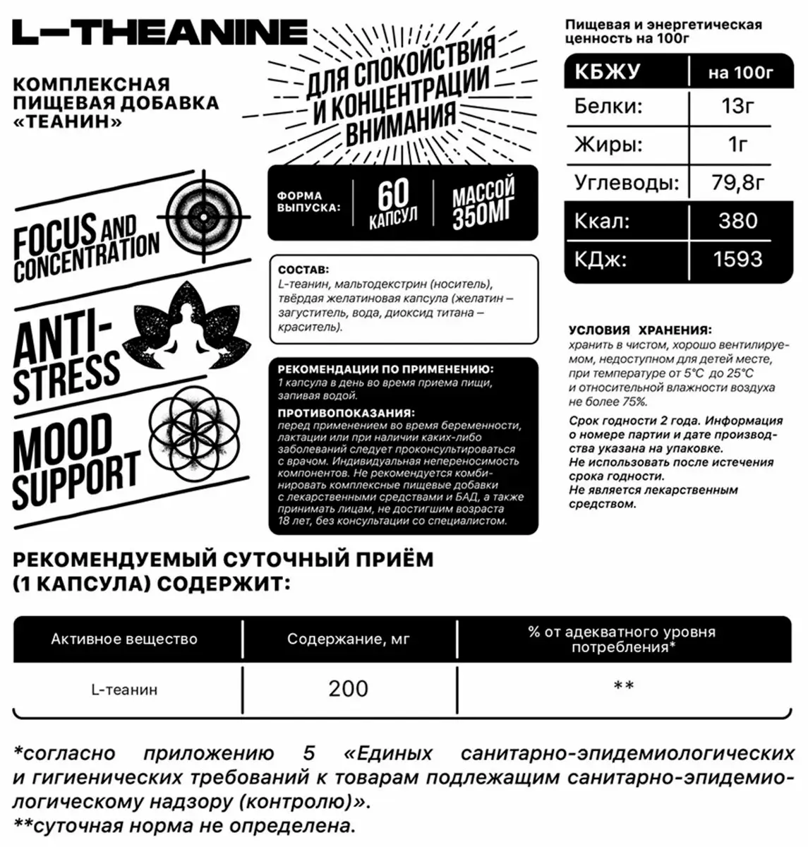 Аминокислота L-теанин помогает в борьбе со стрессом, повышает работоспособность мозга и умственную активность, улучшает память, наполняет организм энергией.