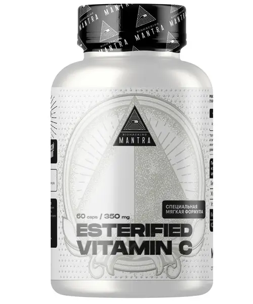 Vitamin C Esterified от Biohacking Mantra — витамин C в форме аскорбата натрия, который не раздражает слизистую желудка и не влияет на его кислотность в отличие от обычной аскорбиновой кислоты.