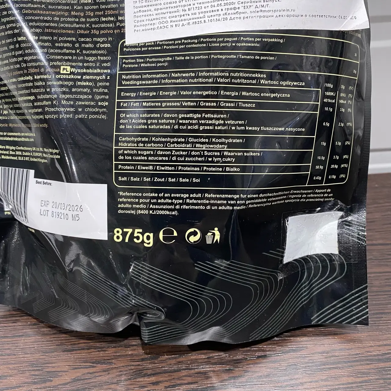 MARS protein Powder 875g (заклеена дырка, 03/26)