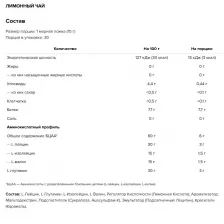 - BCAA 2:1:1 – 6 г (L-лейцин – 3 г, L-изолейцин – 1,5 г, L-валин – 1,5 г)