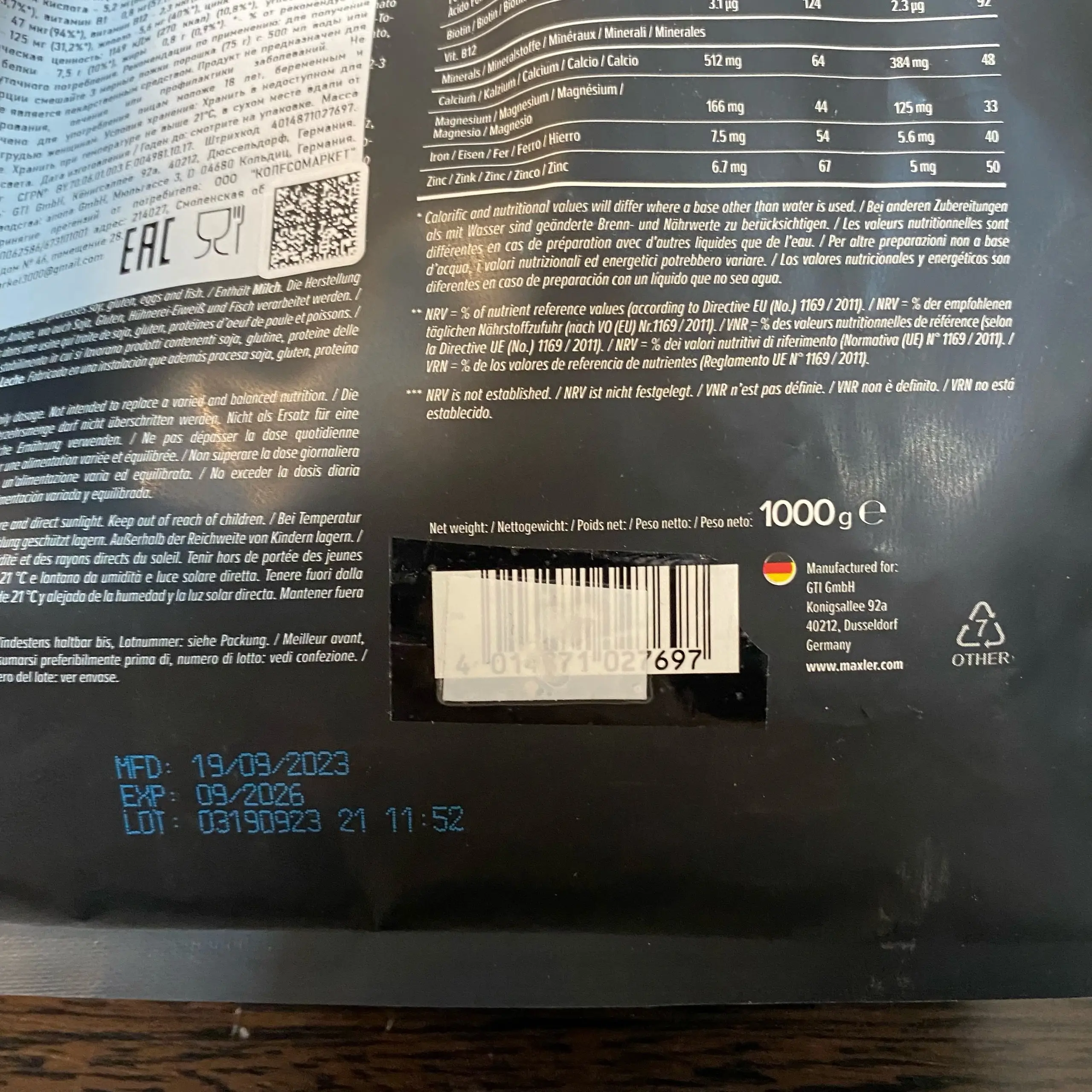MAXLER Mega Gainer 1000g (Chocolate) (заклеена дырка, 09/26)