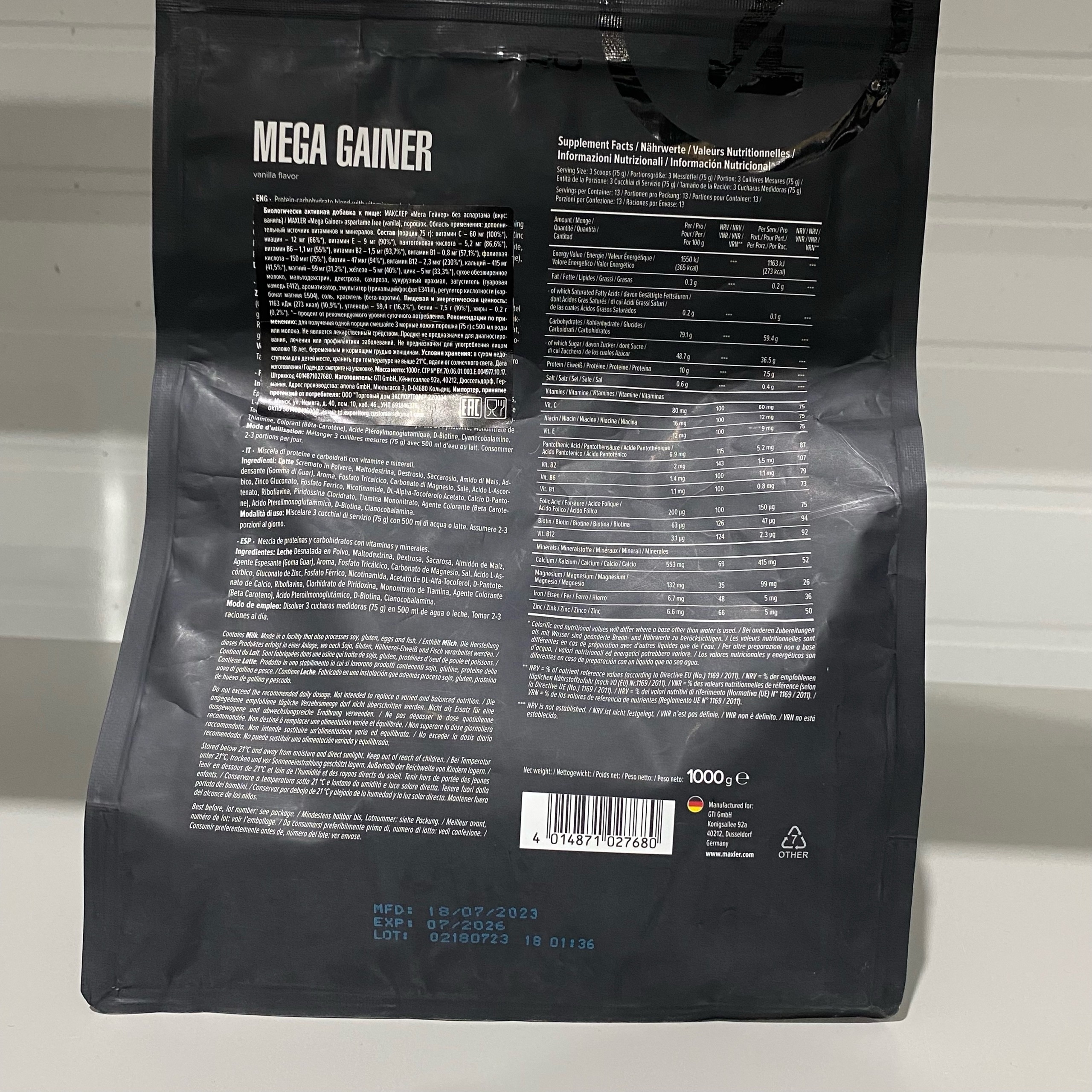 MAXLER Mega Gainer 1000g (Vanilla) (без дефекта, 07/26)
