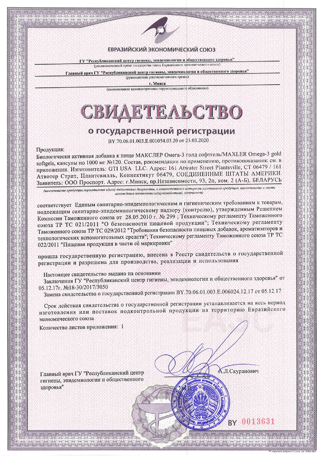 Maxler Omega-3 Gold 120 softgels (USA) БАД