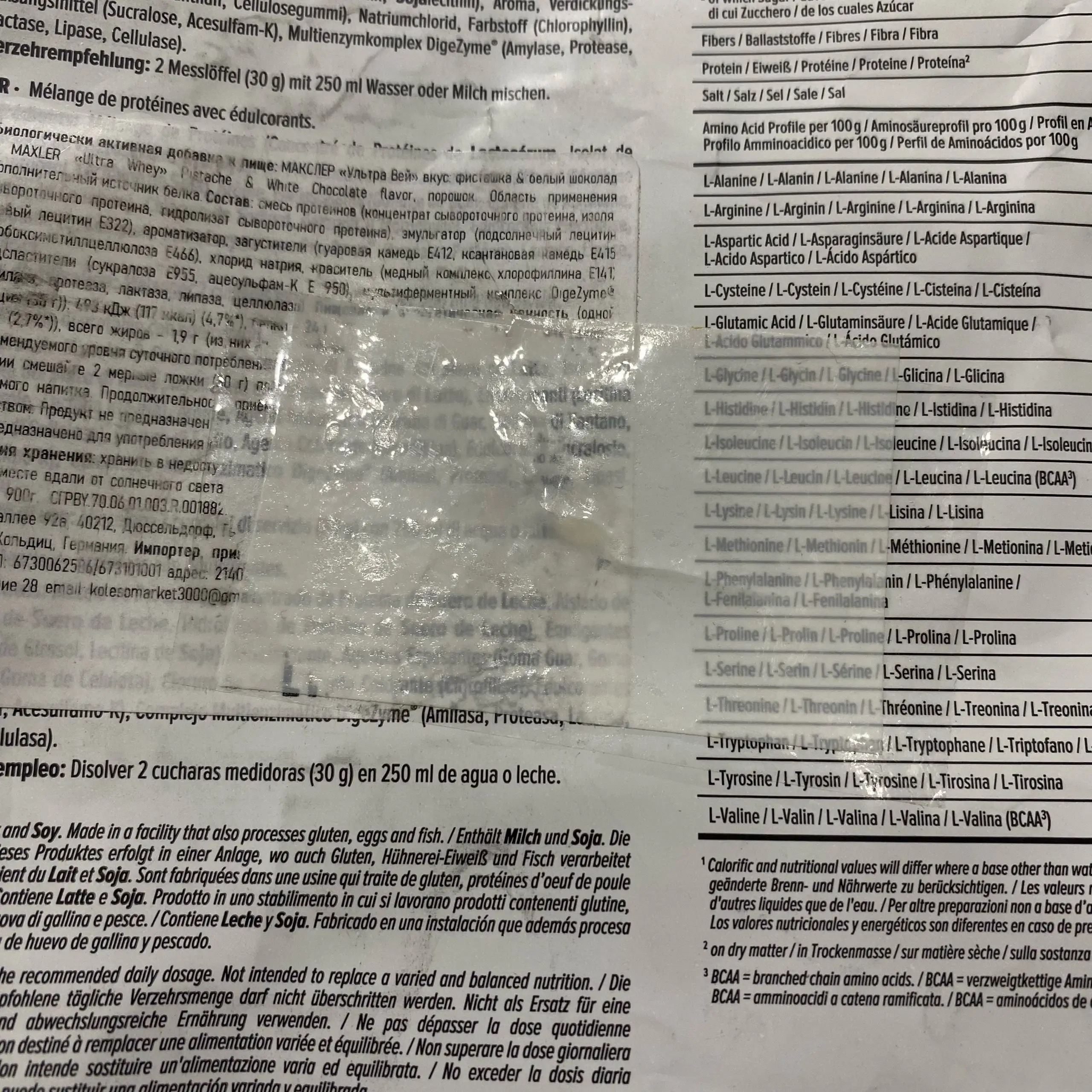 MAXLER Ultra Whey 900g (Pistache & White chocolate) (заклеена дырка, небольшой след от второй этикетки, 09/26)