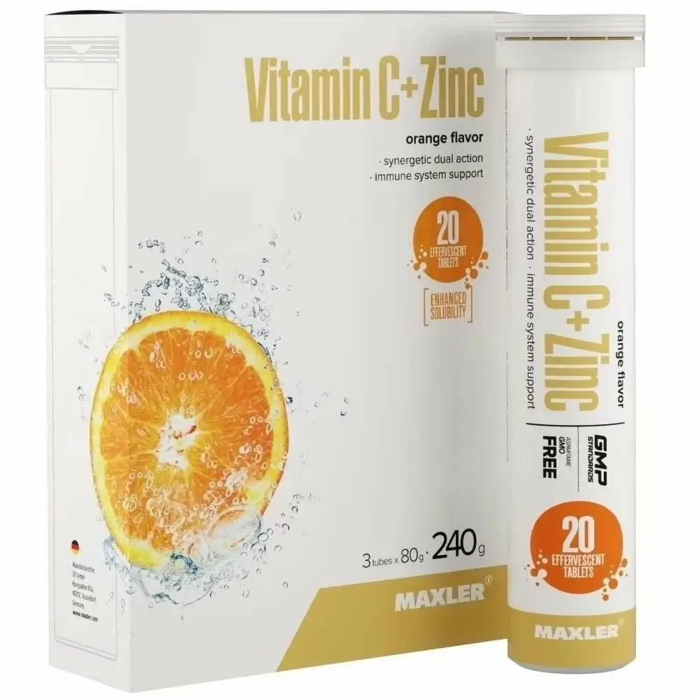 Maxler Vitamin C + Zinc (3×20 таб) — апельсиновые шипучие витамины для иммунитета и энергии