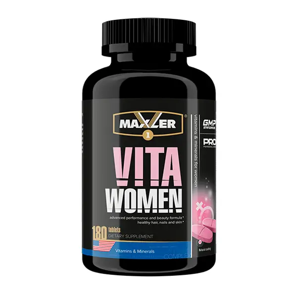Популярный и эффективный комплекс Vita Women от Maxler создан для женщин всех возрастов, предпочитающих активный и здоровый образ жизни. Совокупность ингредиентов, используемых для создания витаминизированных смесей, стимулируют защитные функции всего организма, наполняют женское тело положительной энергией, налаживают систему пищеварения, уменьшают вероятность появления стресса, а также укрепляют ногтевые пластины и структуру волос, что, несомненно, важно для каждой женщины!