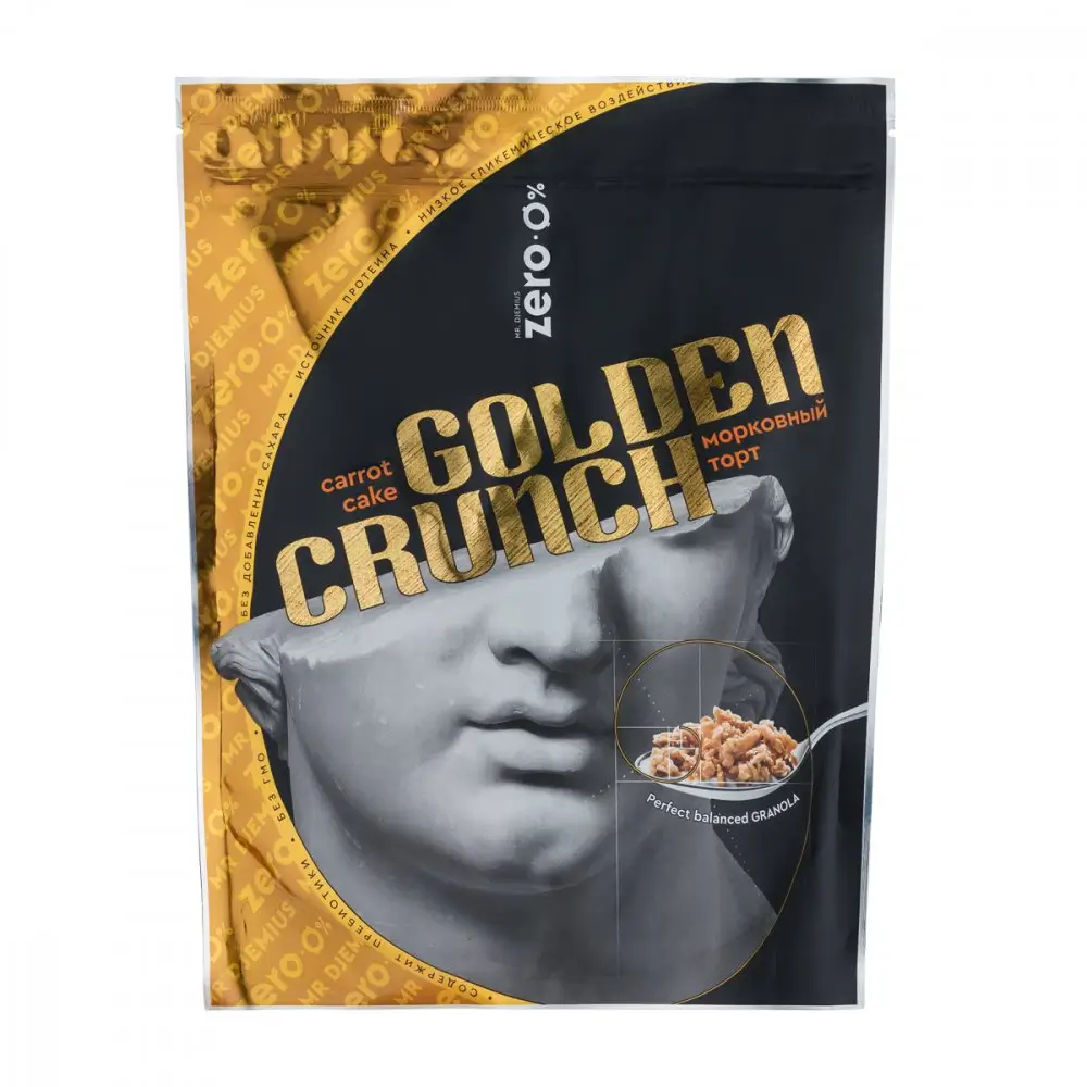 Запеченная гранола «Golden Crunch» со вкусом морковный торт – вкуснейший готовый завтрак на каждый день. Десерт «морковный торт» популярен во многих странах мира, это любимая и понятная всем классика. Вкус моркови в граноле раскрывается по-особенному в сочетании с корицей и кокосовой стружкой. Гранола обладает хрустящей текстурой, приятным вкусом и ароматом.