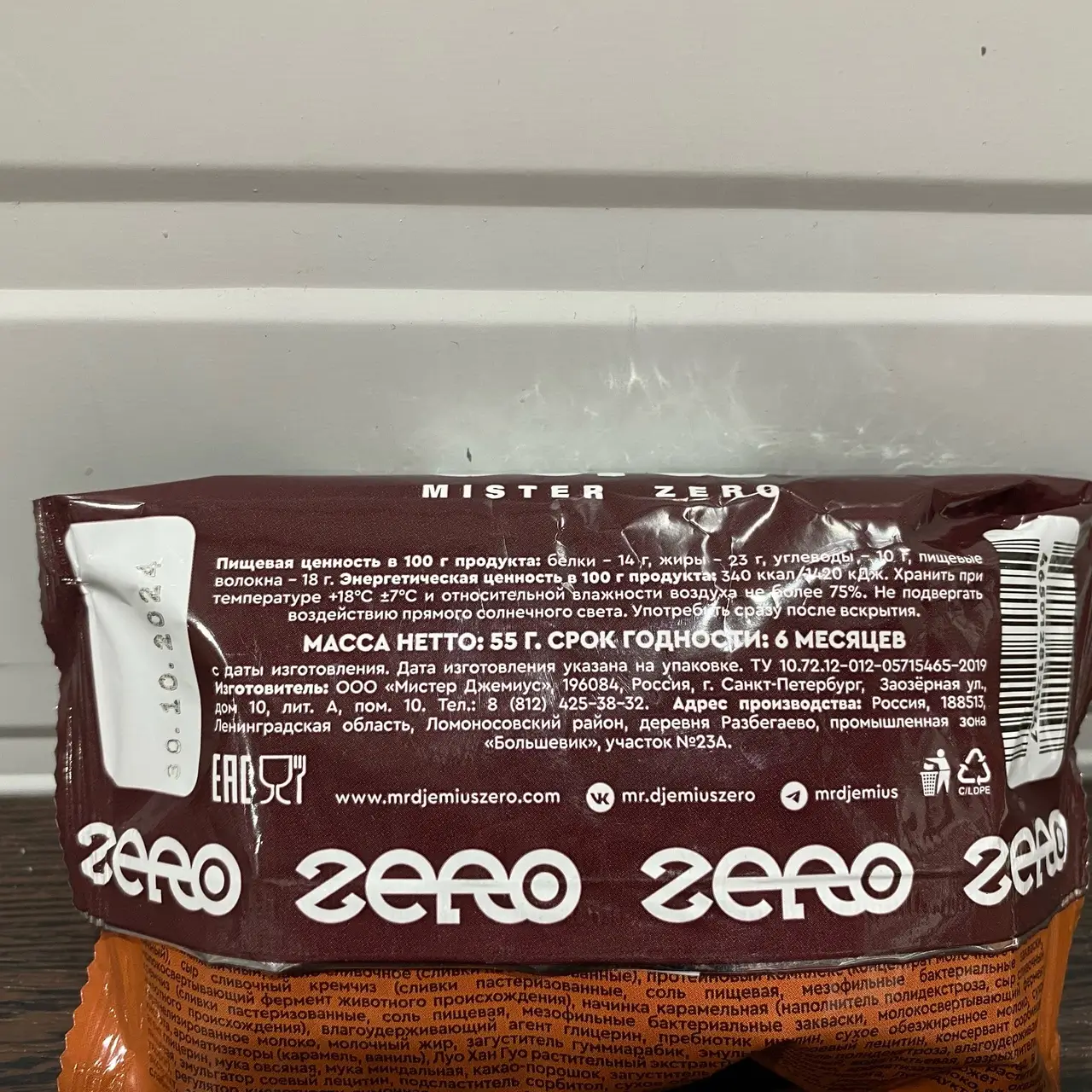 MR.DJEMIUS ZERO Шоколадный Маффин с начинкой 55g (Карамель) (срок 30/04/25)