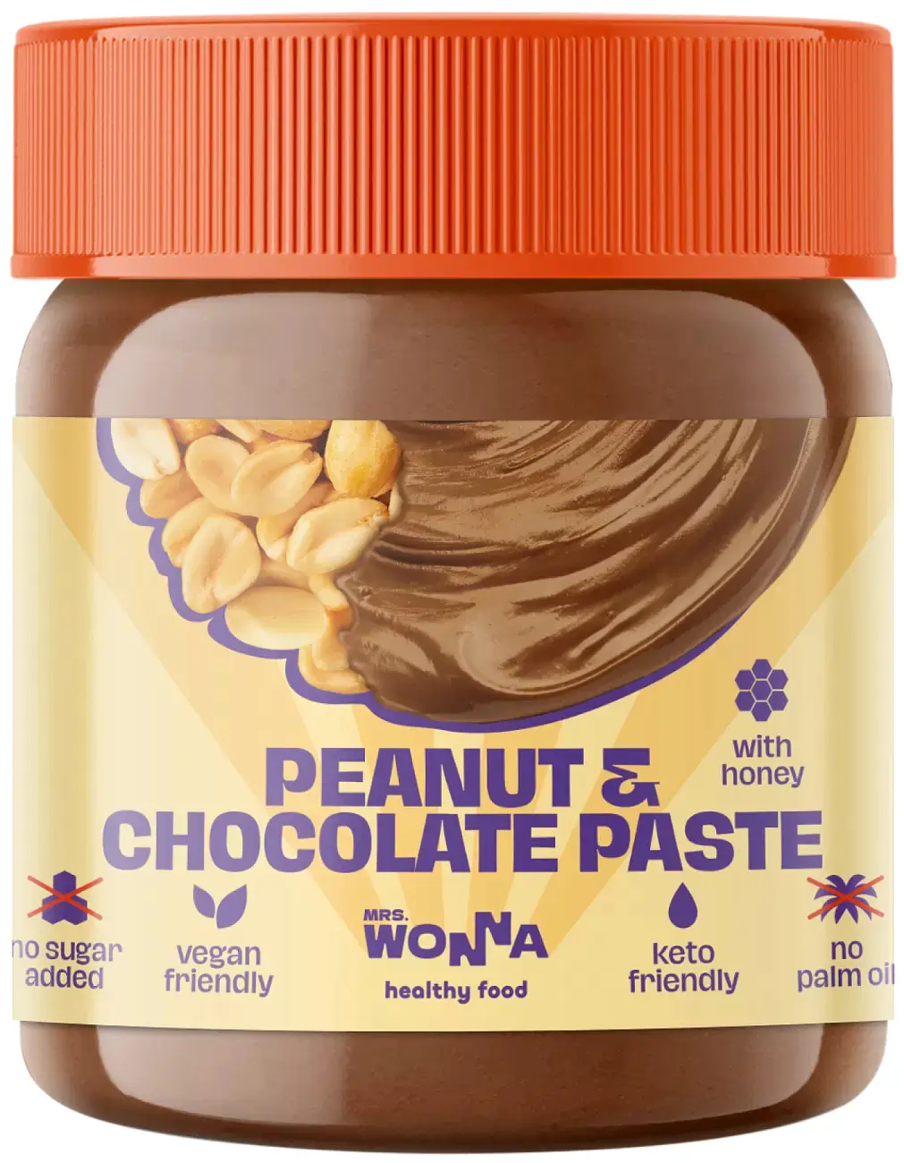 Mrs. Wonna заботливо приготовила арахисово-шоколадную пасту к вашему завтраку или перекусу. А может, для вкусных десертов или кулинарных экспериментов? Нужна лишь ложка only!