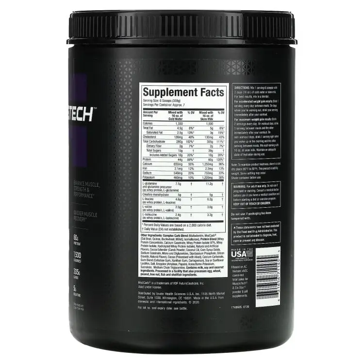 Со 100% -ным набором средств для набора массы вы сможете более эффективно достигать целей в наращивании мышечной массы. Высококачественный протеин и легкоусвояемые углеводы могут обеспечить 1500 чистых калорий при смешивании с 2 чашками обезжиренного молока. Каждая порция содержит более 6 г L-лейцина и более 13 г BCAA при смешивании с 2 чашками обезжиренного молока - важных питательных веществ для увеличения синтеза мышечного белка после тренировки. Они имеют решающее значение для восстановления и наращивания мышечной массы. Самое лучшее? Он мощный и мощный, но имеет отличный вкус.