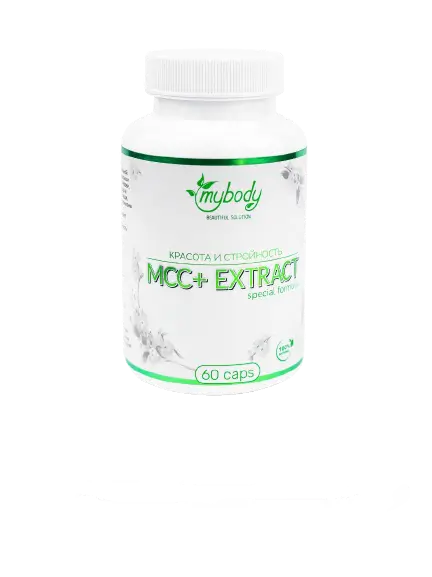 MCC+ EXTRACT - специально разработанный под нужды пищеварительной системы человека комплекс пищевых волокон с добавлением натурального экстракта левзеи. Он способствует снижению чувства голода и сокращению количества потребляемой пищи, коррекции фигуры и веса, очищению организма от токсичных веществ и продуктов метаболизма. Нормализует и поддерживает работу микрофлоры кишечника, восстанавливает адекватную всасываемость полезных веществ и микроэлементов.