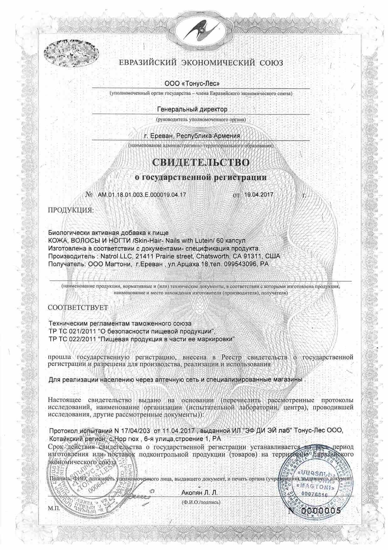 Skin Hair Nails – всеобъемлющий комплекс, разработанный специально для здоровой кожи, волос и ногтей. Новая формула включает в себя немаловажный компонент - Лютеин.