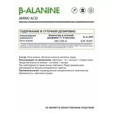 Бета - аланин - незаменимая аминокислота, которая входит в состав биологически активных соединений. Большая часть полезных эффектов бета-аланина, приносящих спортсмену прямую выгоду, обусловлена способностью бета-аланина повышать концентрацию карнозина в мышцах, но, кроме того, бета-аланин участвует в синтезе гликогена в печени, препятствует падению уровня глюкозы в крови (особенно при низкоуглеводной диете), обладает нейропротекторными свойствами, защищает функции памяти, а также положительно влияет на сперматогенез и деятельность предстательной железы. Карнозин действует, как внутримускульный буфер закисления, нейтрализует эффект накопления молочной кислоты в работающих мышцах, который приводит к отказу мышц продолжать работу.