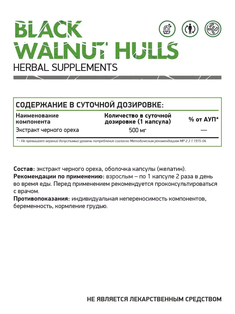 Natural Supp BLACK WALNUT HULLS 60 caps