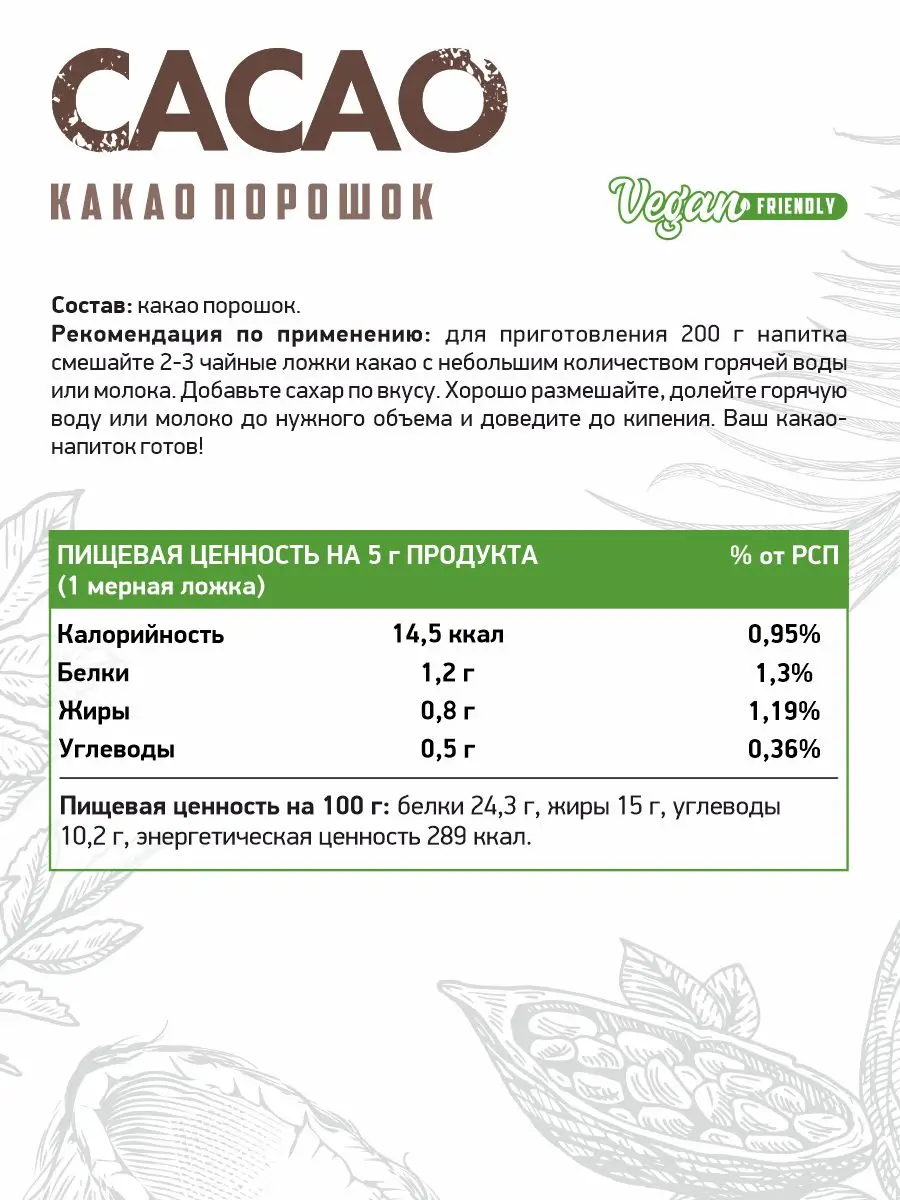 Для приготовления 200 г напитка смешайте 2-3 чайные ложки какао с небольшим количеством горячей воды или молока. Добавьте сахар по вкусу. Хорошо размешайте, долейте горячую воду или молоко до нужного объема и доведите до кипения. Ваш какао-напиток готов!