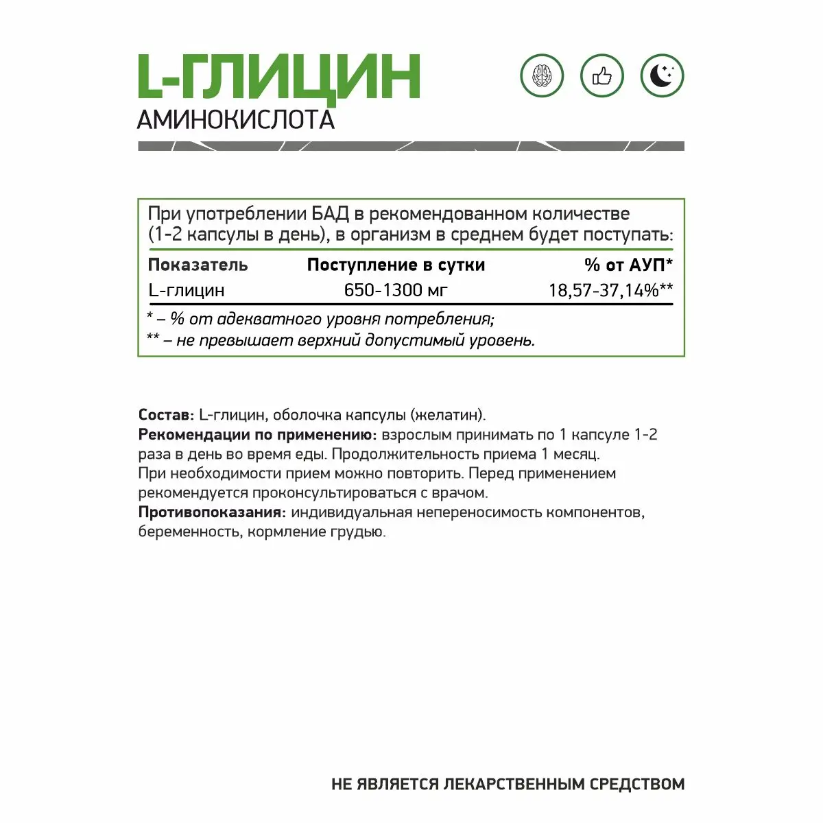 Содержание в порции: Глицин 1000 мг