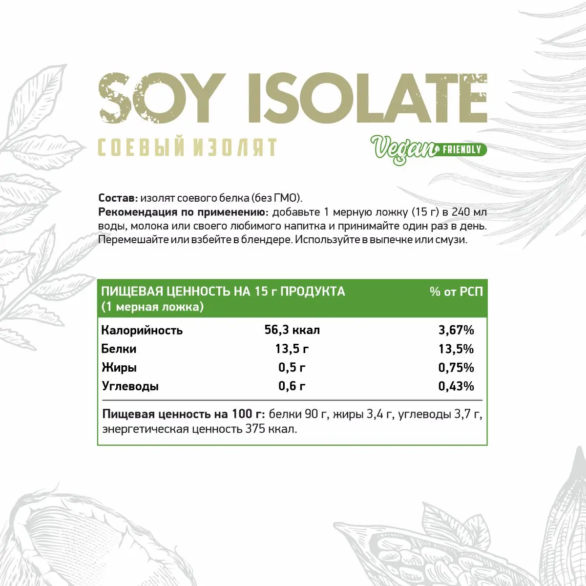 Соевый изолят представляет собой пищевую добавку богатую белком, которую, как ясно из названия, выделяют из сои. Другими словами, соевый изолят – это растительный протеин. Получают его промышленным путем из натурального соевого концентрата, из которого при дополнительной обработке удаляются почти все жиры и углеводы.