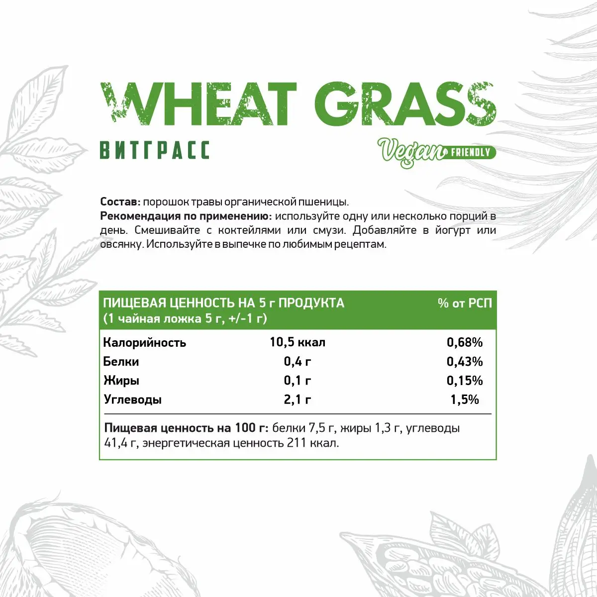 Natural Supp Wheat Grass(порошок из ростков пшеницы) 150g
