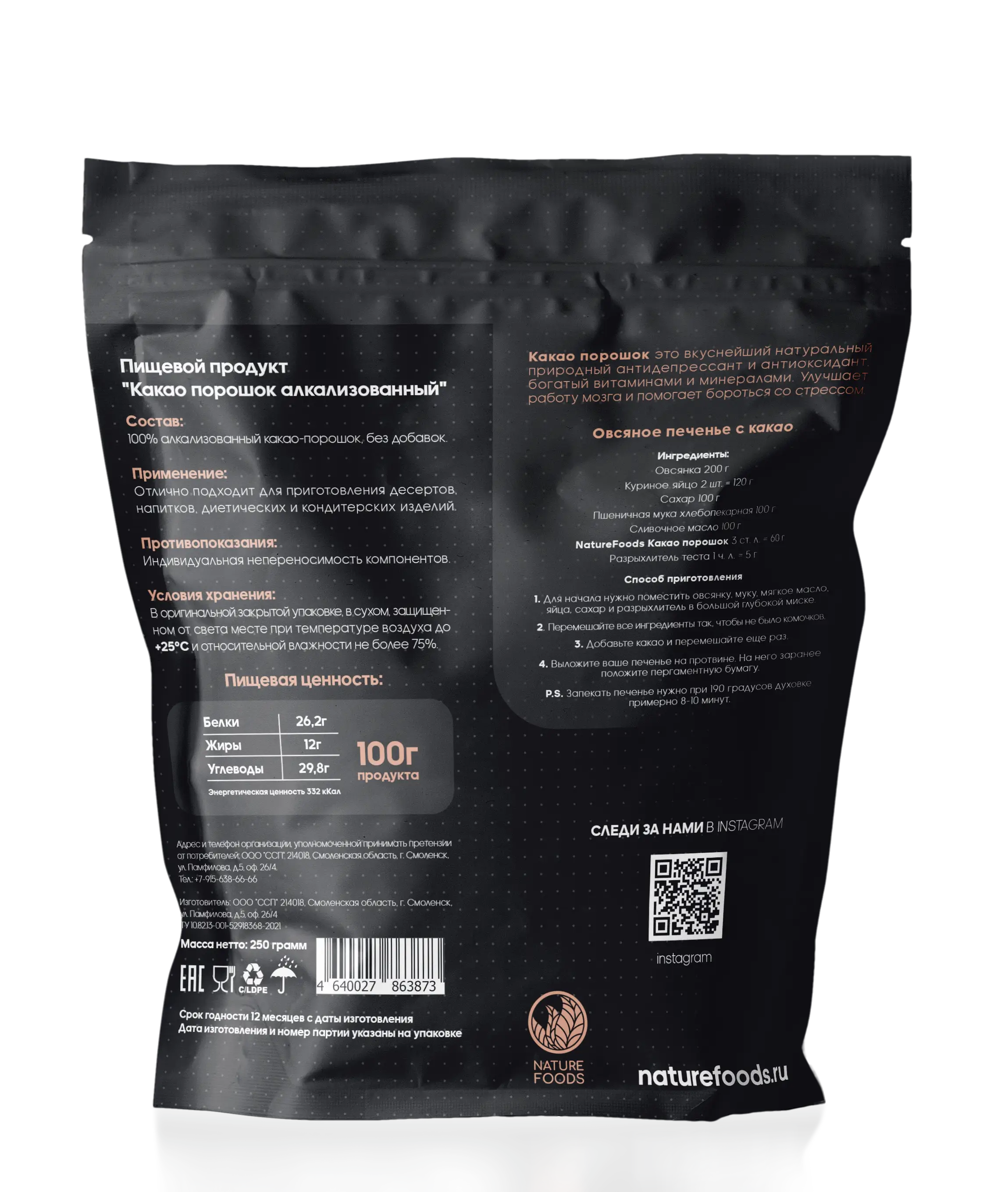 Состав: 100% алкализованный какао-порошок, без добавок.
