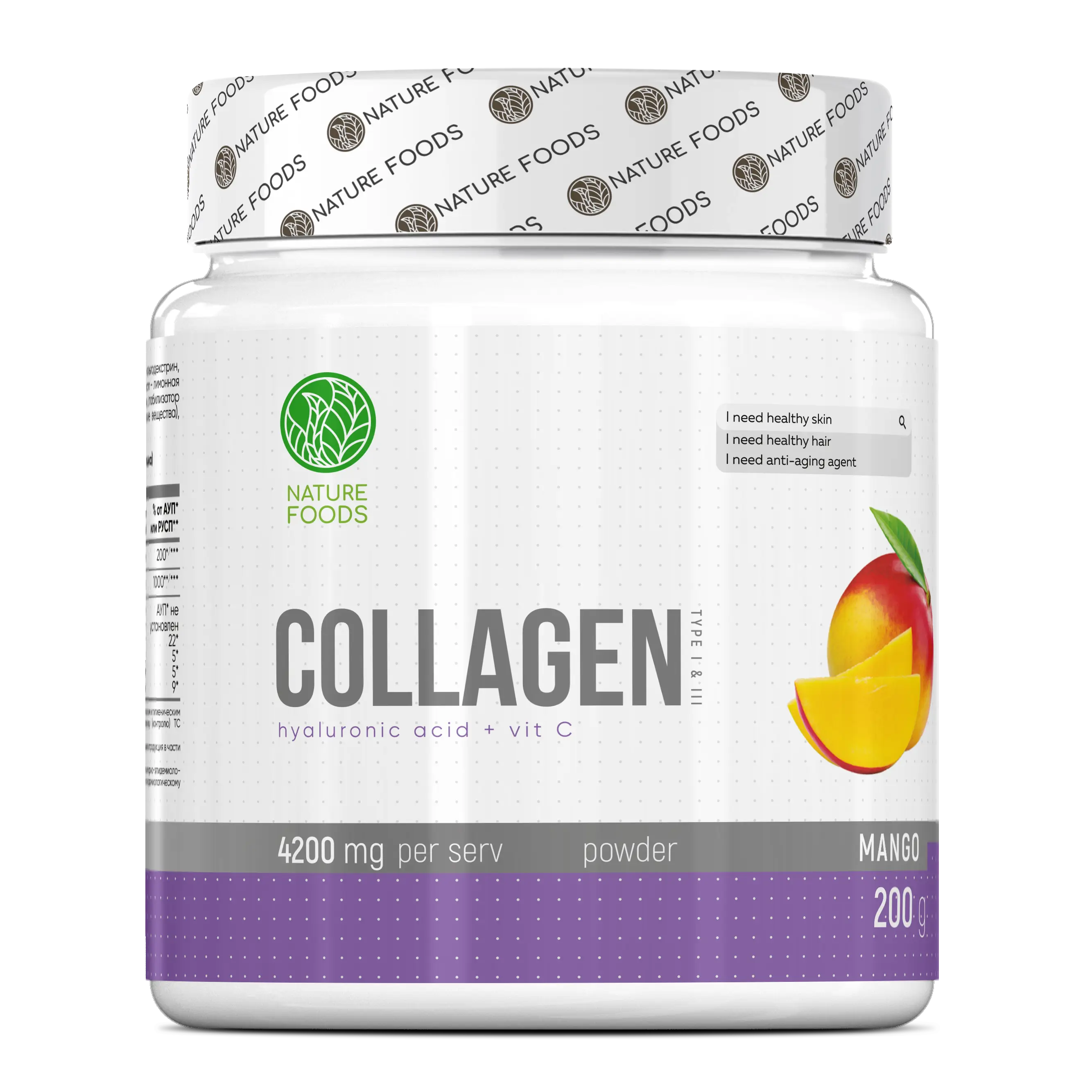 Nature Foods Collagen + Hyaluronic Acid + Vitamin C 200 г