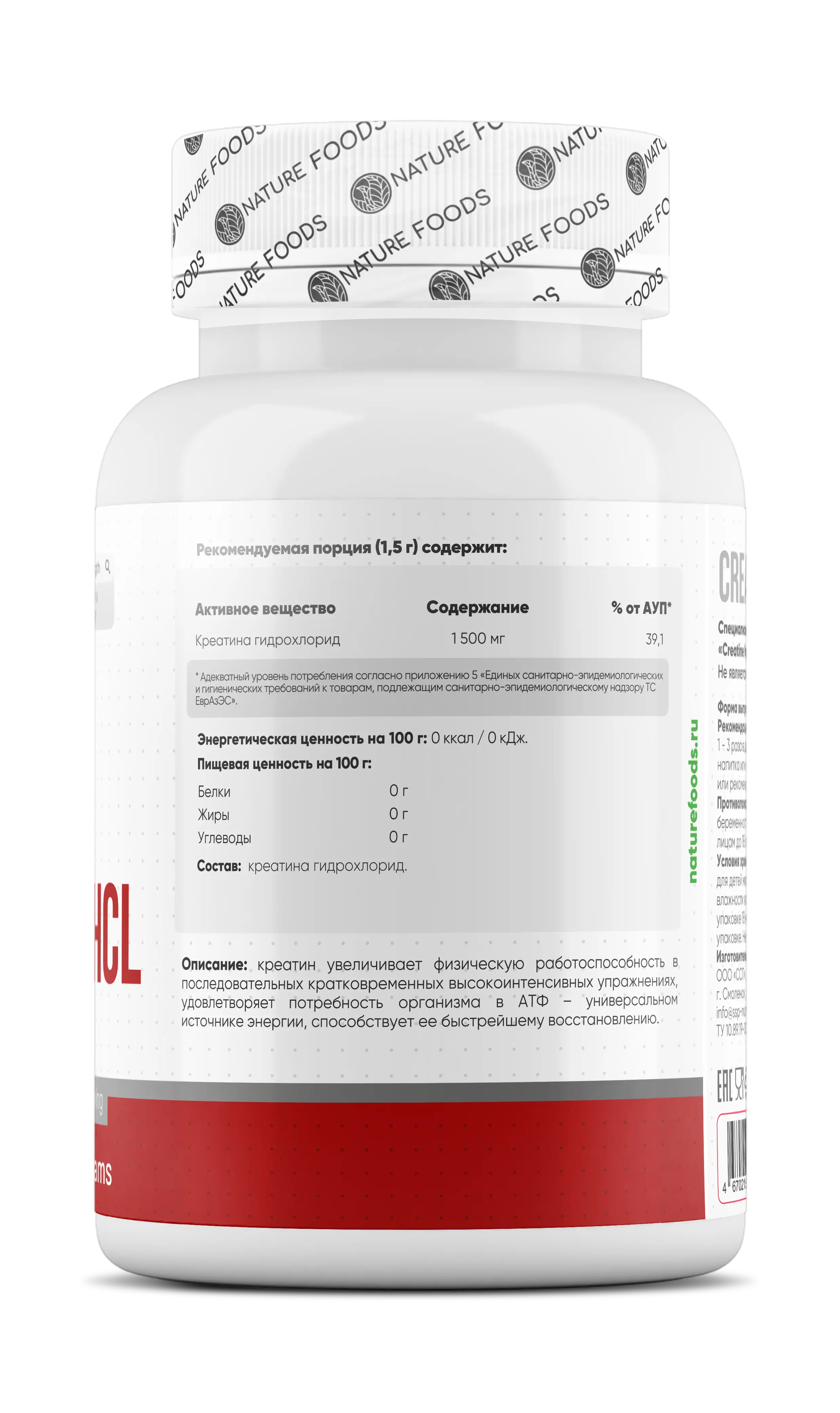 Nature Foods Creatine Hydrochloride 120g – улучшенная форма креатина для максимальных результатов!
